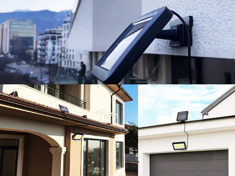 Split design má velkou výhodu: panel a lampa nejsou na jednom místě. Panel umístíš tam, kde je nejvíc slunce — ideálně na jižní fasádu, výš a bez stínu — aby se nabíjel na maximum. Lampu necháš přesně tam, kde potřebuješ světlo: vchod, cesta, dvůr, garáž.